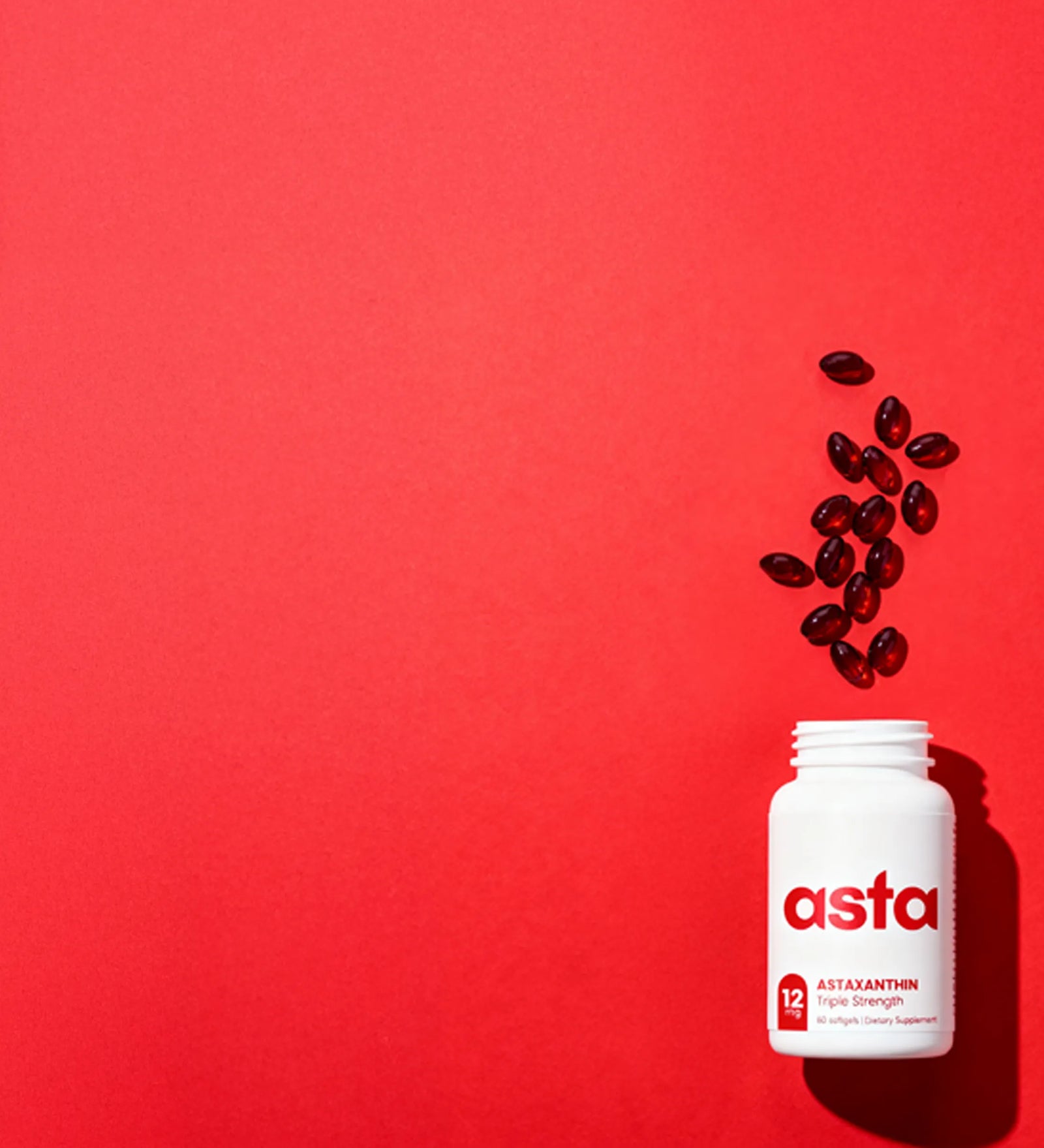 ASTA Astaxanthin supports your skin health from within with our 12mg formula derived from natural microalgae.